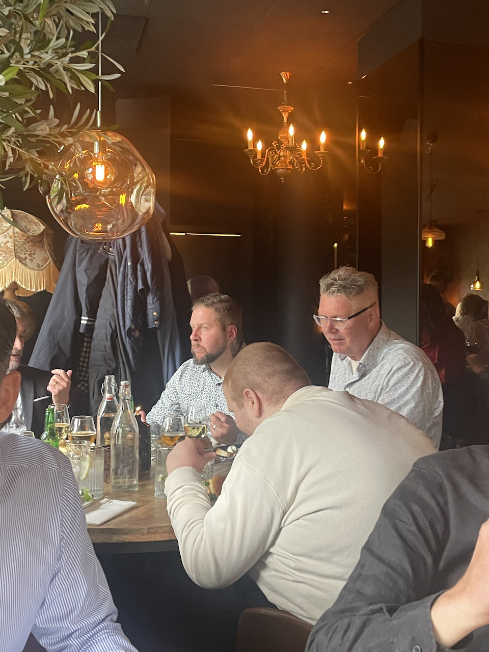 Efter en eftermiddag fylld av aktiviteter och skratt, fortsatte kvällen på Kitchen & Cocktails. Där avnjöt vi en utsökt middag, ackompanjerad av samtal som flödade fritt mellan arbete och fritid. Det var en kväll där vi verkligen lärde känna varandra på djupet, bortom titlar och arbetsroller.